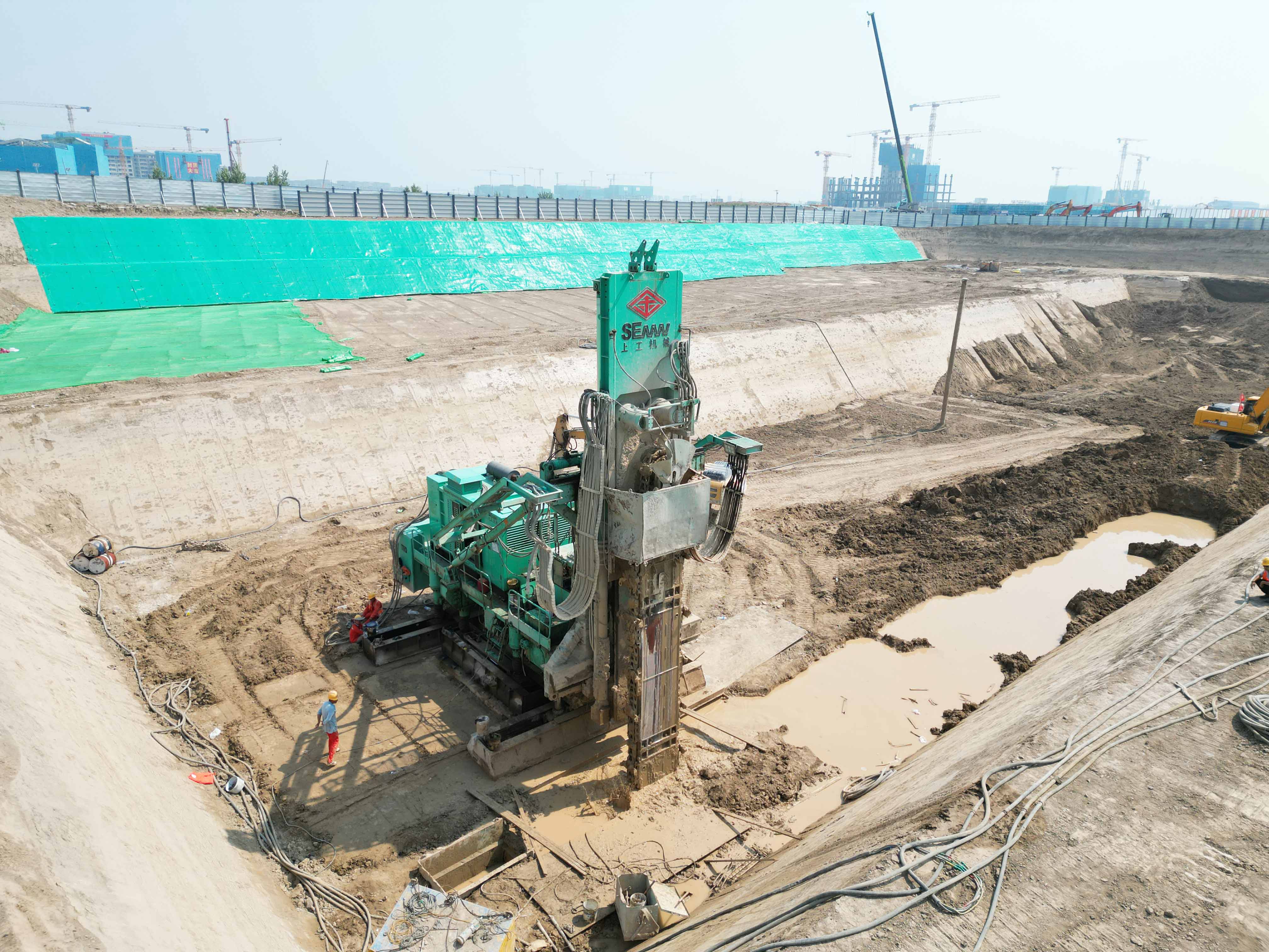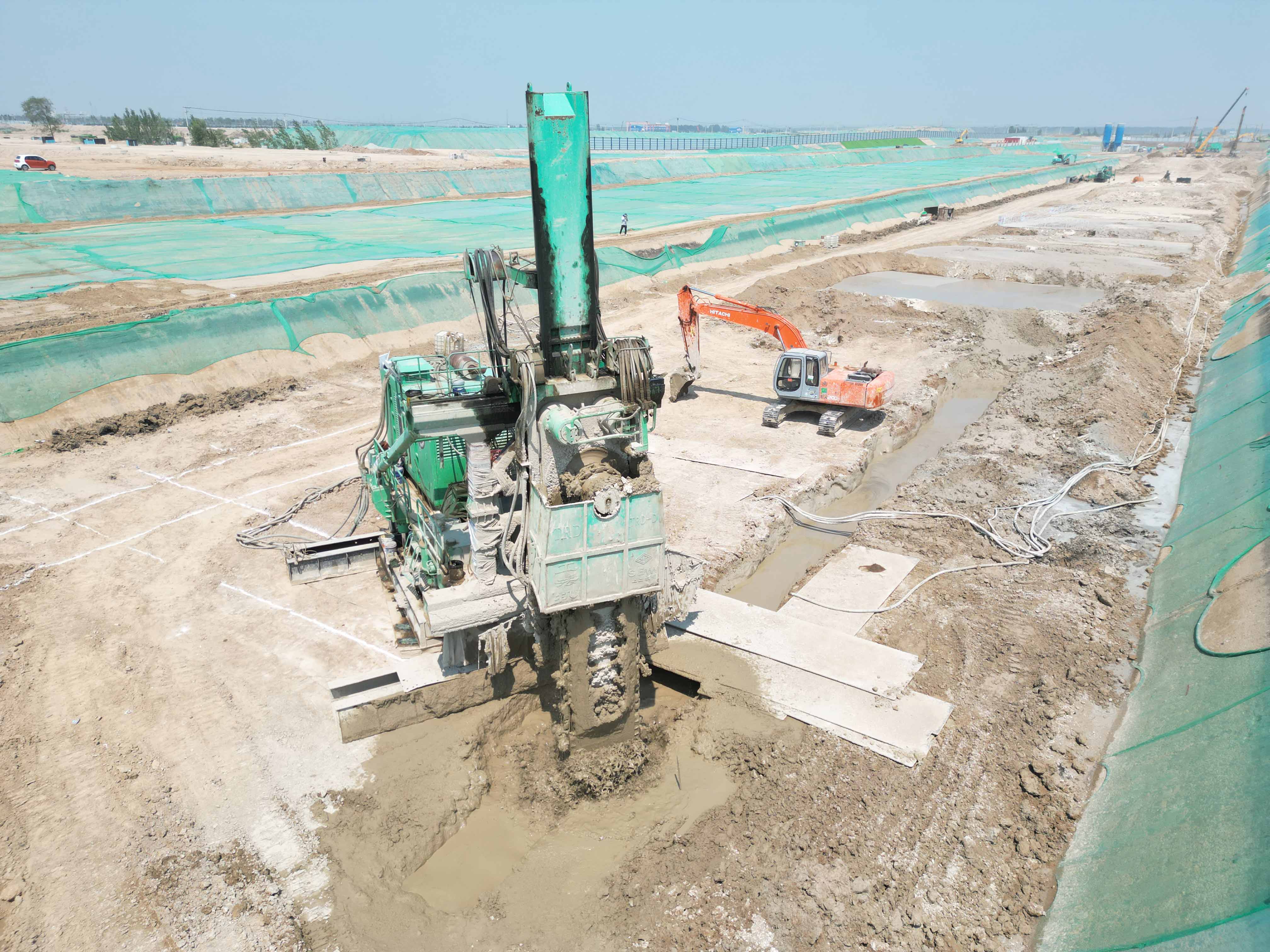 “上工機械TRD工法機是真有勁,現場主要爲白溝引河(毗鄰隧道(dào)部分河道(dào)被(bèi)荒地、農田及綠化帶所填埋),地質情況複雜,上工的設備總是能(néng)很輕松的應對(duì)自如,牆體深度27-40m,先行掘進(jìn)速度2m-3m/h,回撤挖掘速度8m/h,成(chéng)牆攪拌速度2.4m/h的。”每天將(jiāng)近20個小時(shí)的工作時(shí)長(cháng),設備不停、故障率很低,人員兩(liǎng)班倒,成(chéng)牆方量多,現場機手師傅豎起(qǐ)大拇指稱贊道(dào),“沒(méi)說(shuō)的,用上工設備我們放心。”