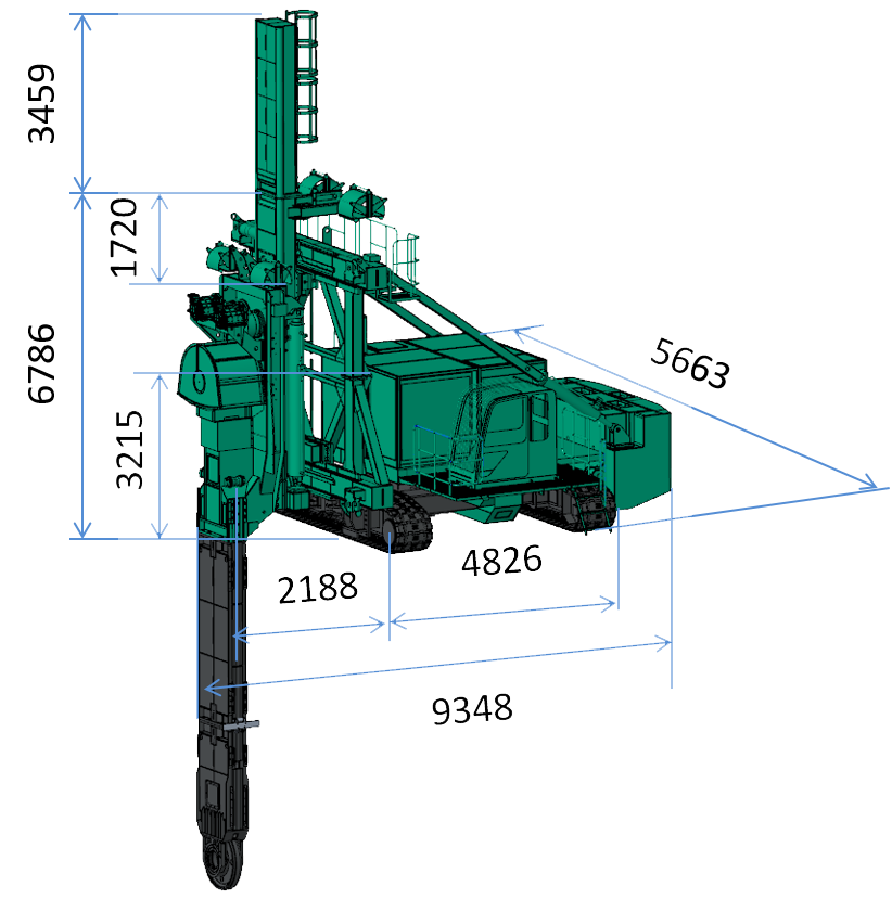 1.低淨空全電驅動 施工淨高度10m,最低高度6.8m,寬度5.7m,長(cháng)度9.5m,施工作業面(miàn)積小;全電驅動,節能(néng)環保、噪音小;最大施工深度50m,成(chéng)牆寬度550-900mm。 2. 雙動力系統 純電主動力系統:可調節電機速度、電機扭矩,應對(duì)不同地質要求;結合電液輔助系統保證施工靈活性和質量可控性,提高切削效率,減少能(néng)耗。 3.智能(néng)化控制 根據不同地層設定不同施工參數,提高施工效率的同時(shí)可提高設備可靠性;通過(guò)遠程監控、攝像監控實時(shí)監控設備狀況、工作狀态;具備近距離遙控操作設備動作功能(néng)。 4.履帶式一體化設備 轉場便利,運輸拆裝簡化,整體性運輸不超過(guò)35t,長(cháng)寬高均不受限制,運輸寬度3.36m,運輸高度3.215m。 5.檢修方便 平台空間布局合理,預留維修空間及維修通道(dào)。 6.施工效率高 施工效率高于SMW工法,40m深度施工效率接近于或超過(guò)TRD-C50及市場同型号産品。 7.抗風險能(néng)力高 提升結構強度優化,提升力達到90T*2,配備支腿油缸滿足在标準深度應對(duì)埋鑽等風險。 8.全新駕駛室設計 采用挖掘機駕駛室,造型美觀,布局合理;可調節座椅,空調系統,施工環境更加舒适;多塊顯示屏組合,實時(shí)監控施工狀況。 TRD-C50工法機技術參數: