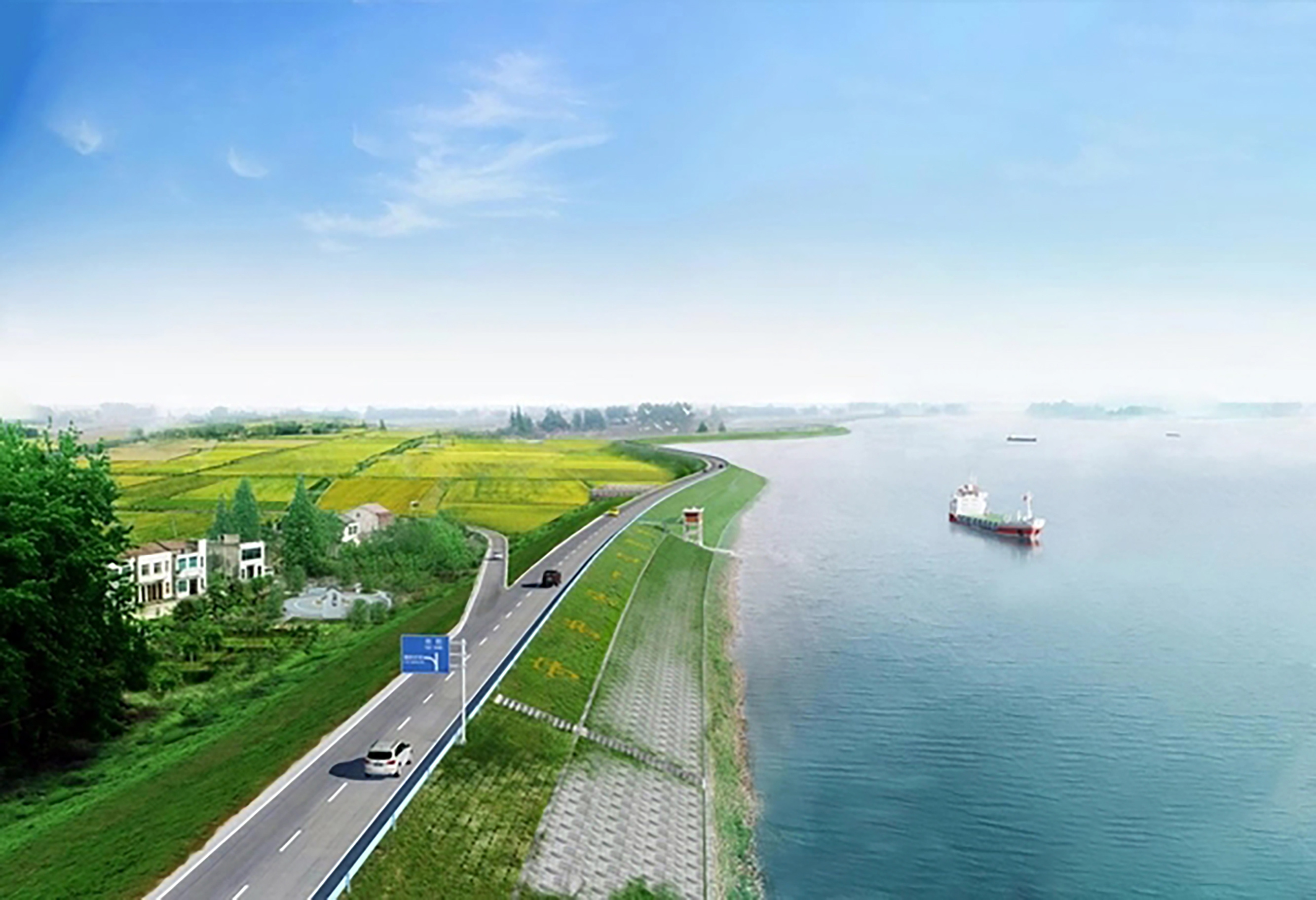 ▲洞庭湖堤防加固工程現場工程介紹效果圖