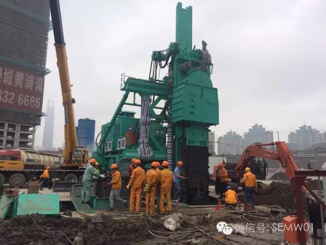 2016年5月,上工廠TRD-D工法機進(jìn)駐上海機械施工集團有限公司施工現場,進(jìn)行董家渡地塊(黃浦區小東門616、735街坊地塊項目北塊)的施工作業。這(zhè)是上工廠首筆與國(guó)内大型機械施工單位簽訂的TRD合同。按照上海機施要求,TRD-D工法機于五月中旬進(jìn)現場試樁,5月28日下午正式施工,施工要求成(chéng)牆寬度800mm,深度55m。