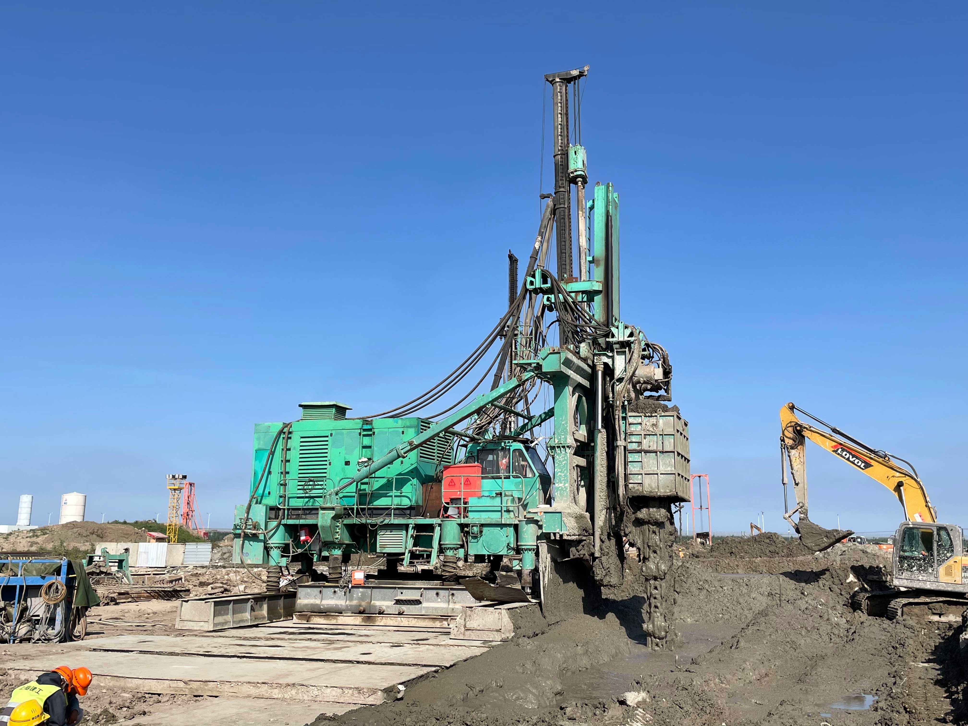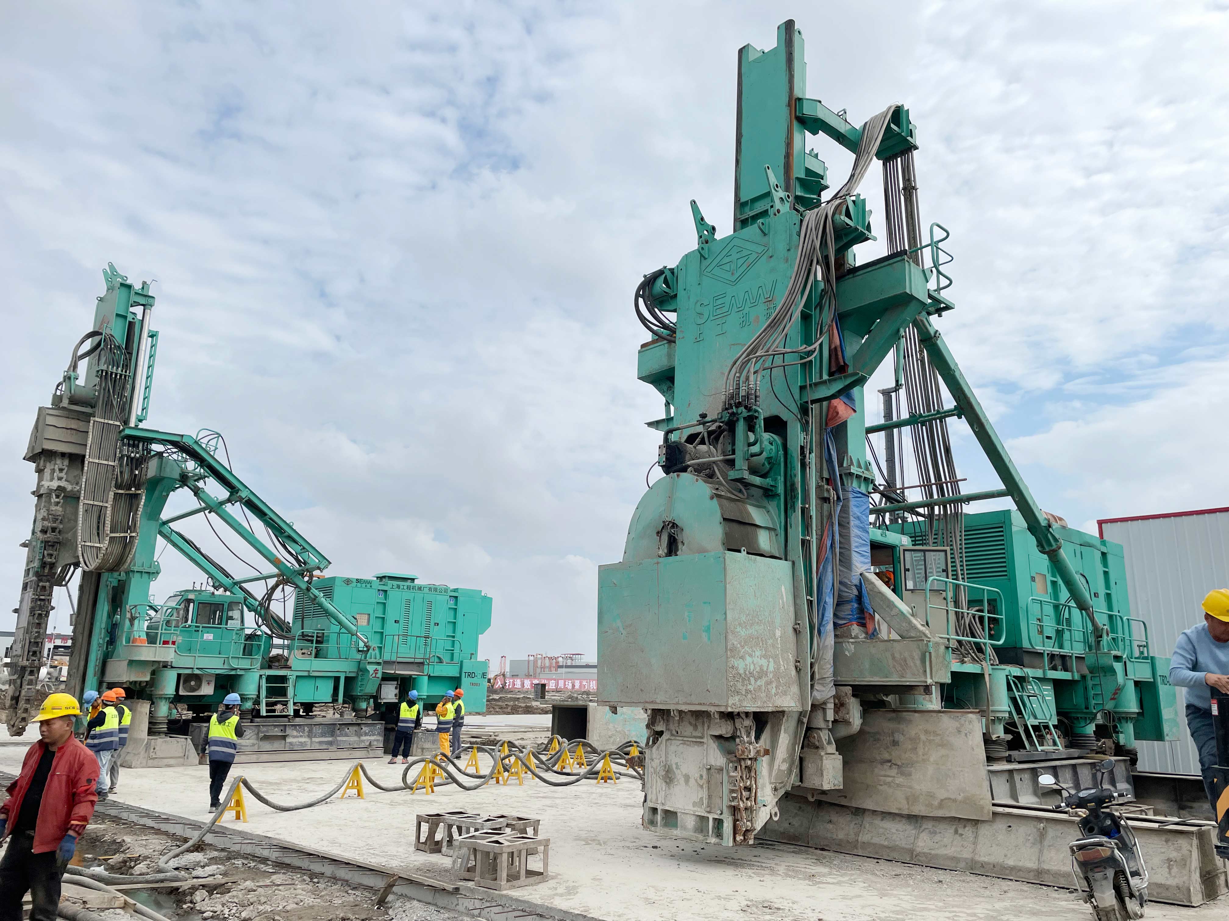 ▲上工機械8套超深三軸式鑽孔機設備現場施工