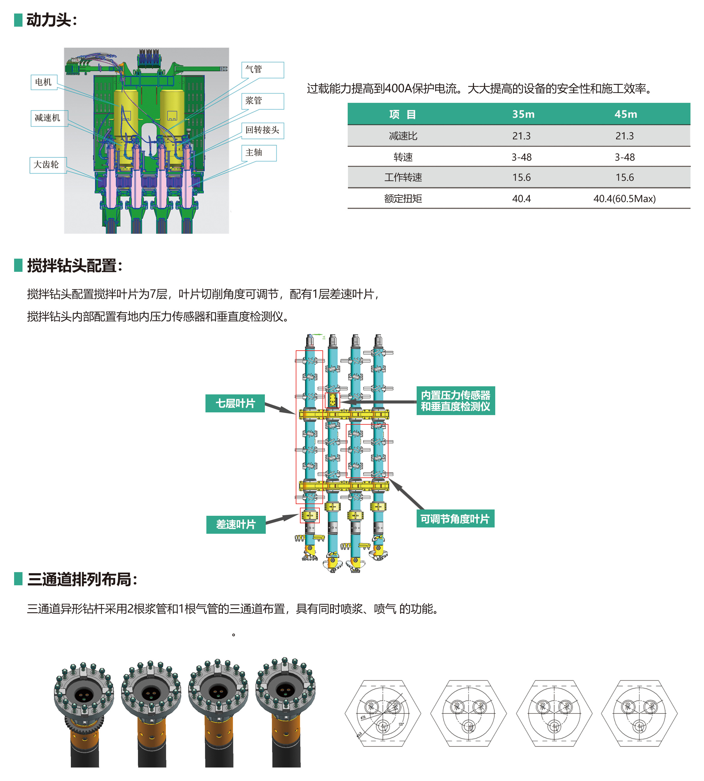 ●特殊的鑽具及配套設備的設計,提高攪拌均勻性、成(chéng)樁垂直度可控制在1/300。