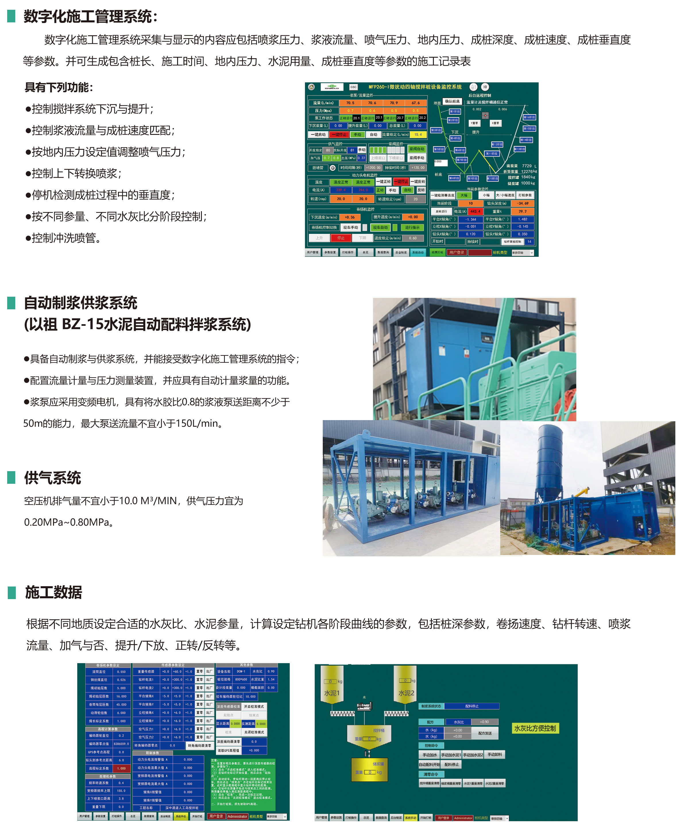DMP工法是一種(zhǒng)氣、漿結合的施工工法,主要爲了解決傳統攪拌樁施工過(guò)程中樁身強度不均勻、信息化水平低、施工質量難以管控、置換土體較多、施工擾動大、成(chéng)樁效率低等問題;本工法可以有效減小深部攪拌時(shí)的阻力,提高水泥土的攪拌均勻性及成(chéng)樁質量。