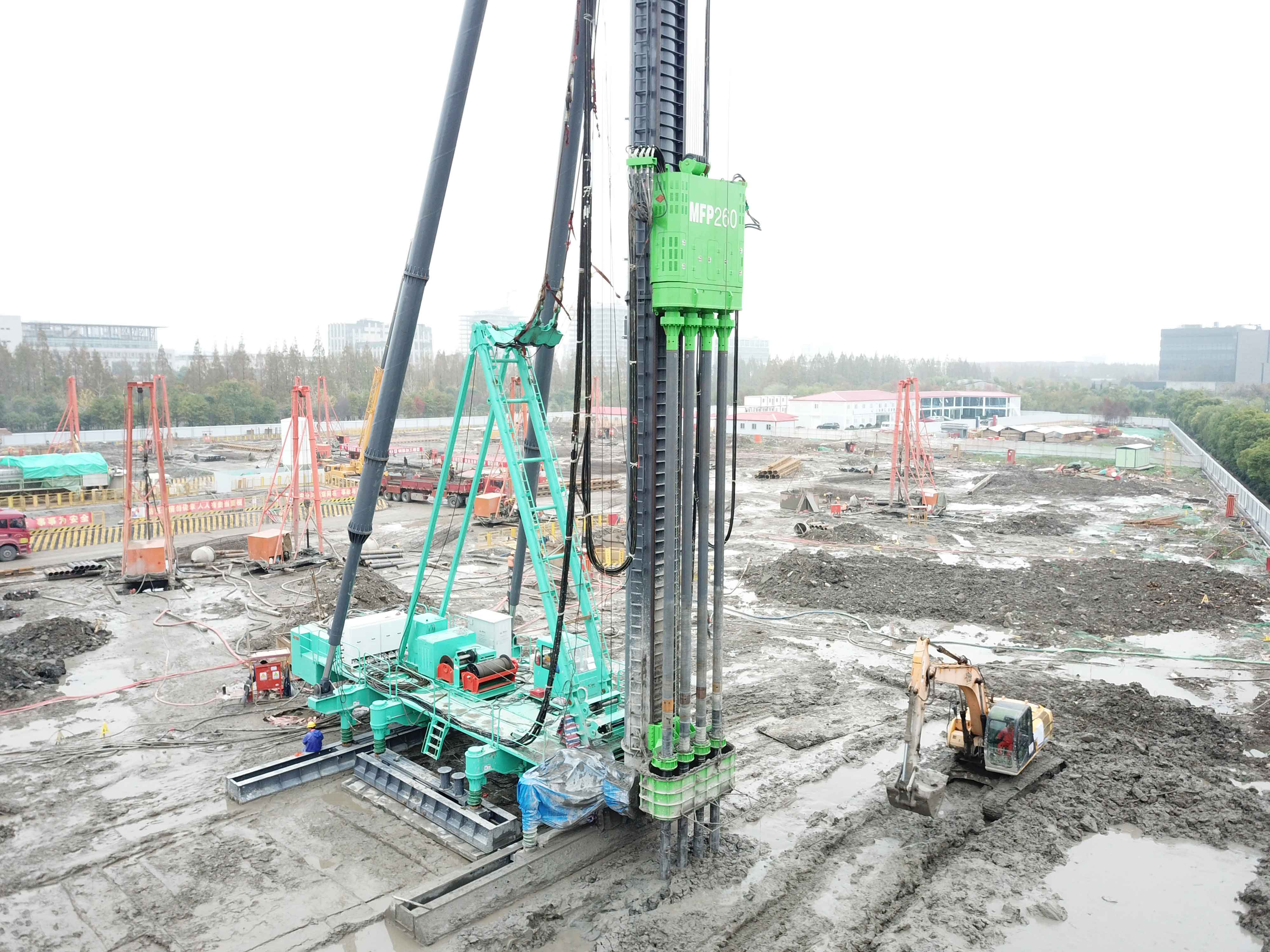 彙各方之智,聚各方之力,MFP260-I微擾動四軸攪拌樁鑽孔機(DMP工法設備)是上工機械會(huì)同上海淵豐等國(guó)内知名企業、院校聯合研發(fā)的一款新型四軸攪拌樁鑽孔機,主要是爲了解決傳統攪拌樁施工過(guò)程中樁身輕度不均勻,信息化水平低,施工質量難以管控,置換土體較多,施工擾動大,成(chéng)樁效率低等問題。近期,該設備在上海浦東張江鎮及上海浦東機場兩(liǎng)個“十四五”規劃中的重點項目中顯露鋒芒,加速推進(jìn)浦東新區一線基礎建設。