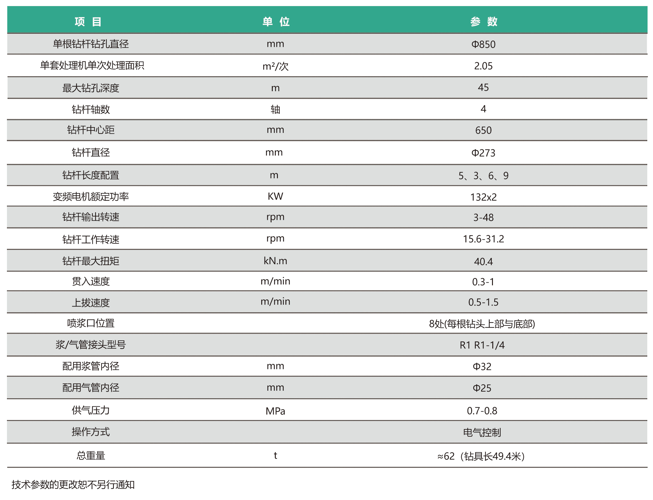MFP260-I微擾動四軸攪拌樁鑽孔機性能(néng)參數: