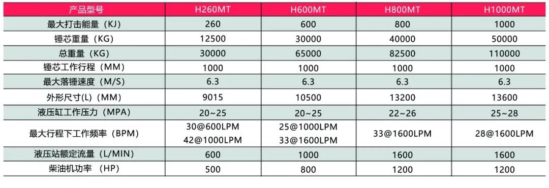 本系列液壓打樁錘屬于雙作用式,沖擊錘芯通過(guò)液壓裝置提升到預定高度後(hòu),在重力勢能(néng)及壓縮氮氣的彈性能(néng)聯合作用下,獲得較高的錘芯沖擊速度,提升液壓打樁錘的打擊能(néng)量。