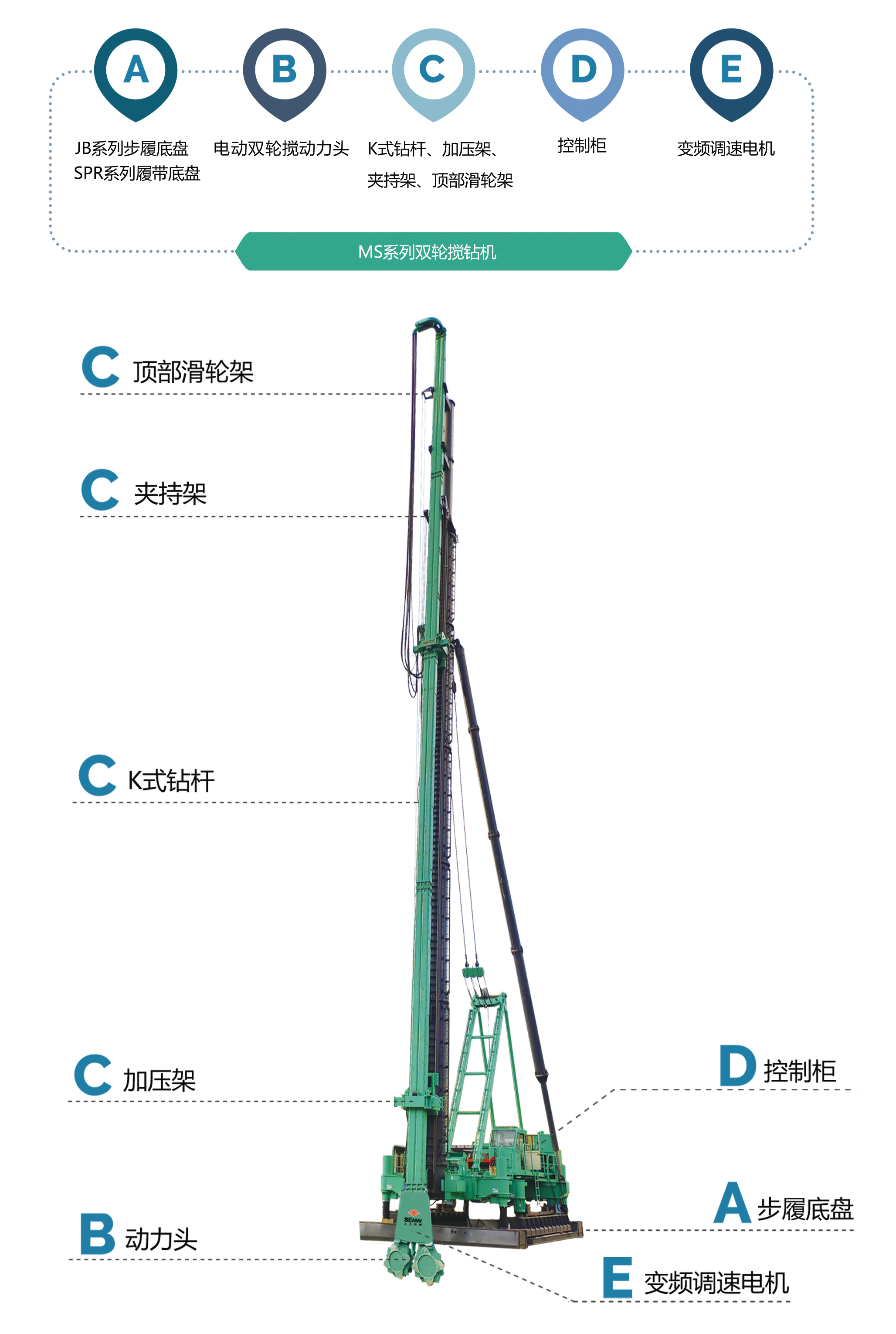 MS系列雙輪攪拌鑽機是CSM工法專用設備,适用于建築物基坑、地下停車場、地鐵車站、地下商業街、水庫大壩、環保工程等深基礎項目中的止水帷幕、擋土牆等工程施工。
