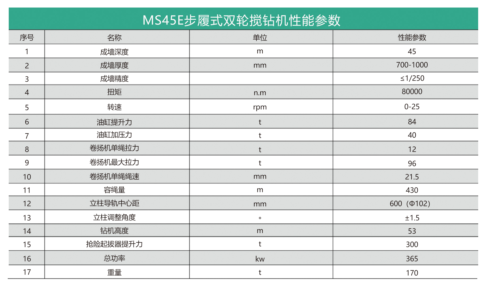 MS45E步履式雙輪攪拌鑽機技術參數表