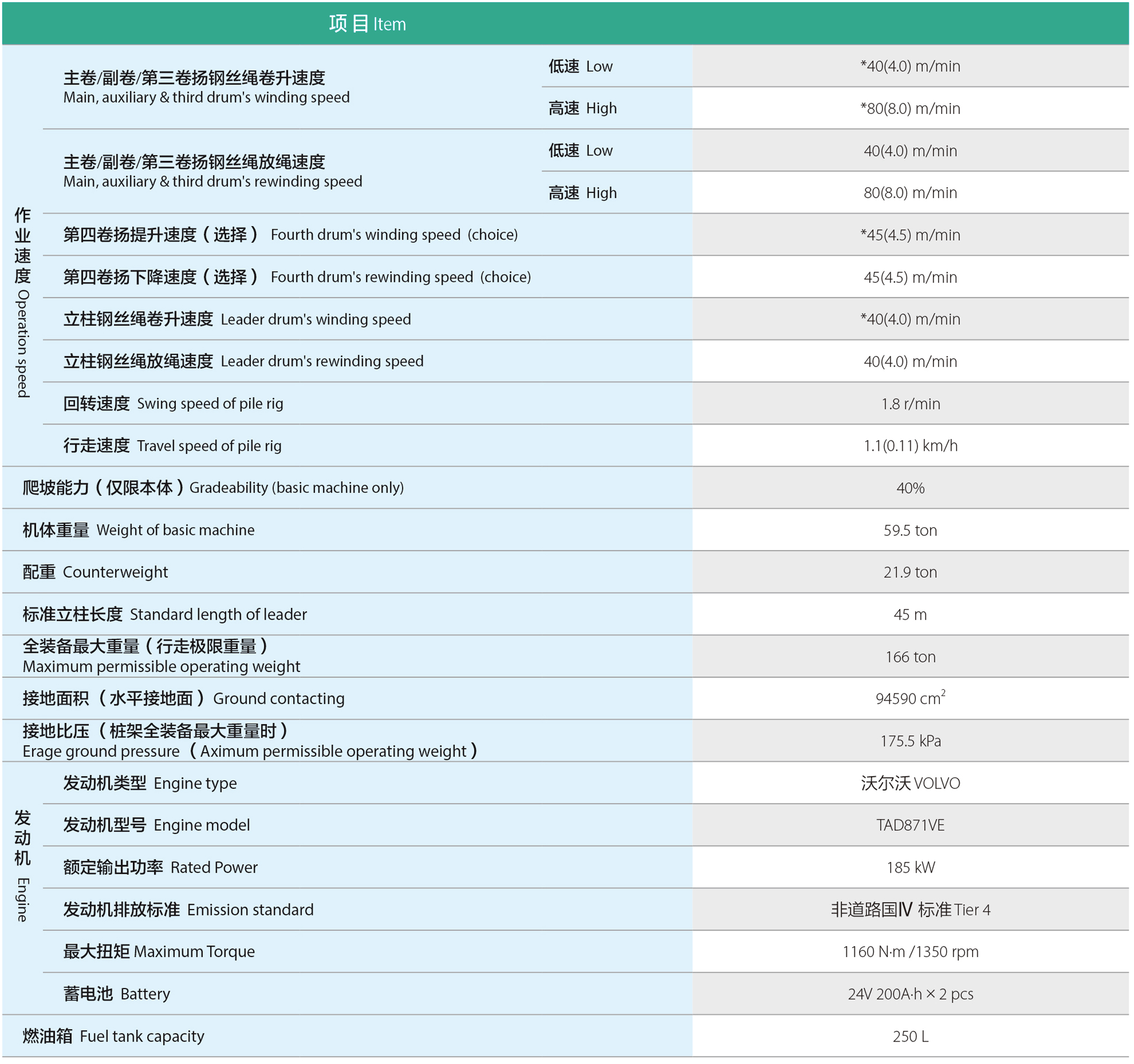 ●主、副全液壓獨立馬達,大容繩量卷筒适應多類施工 要求,配有第四卷揚裝置(選配);