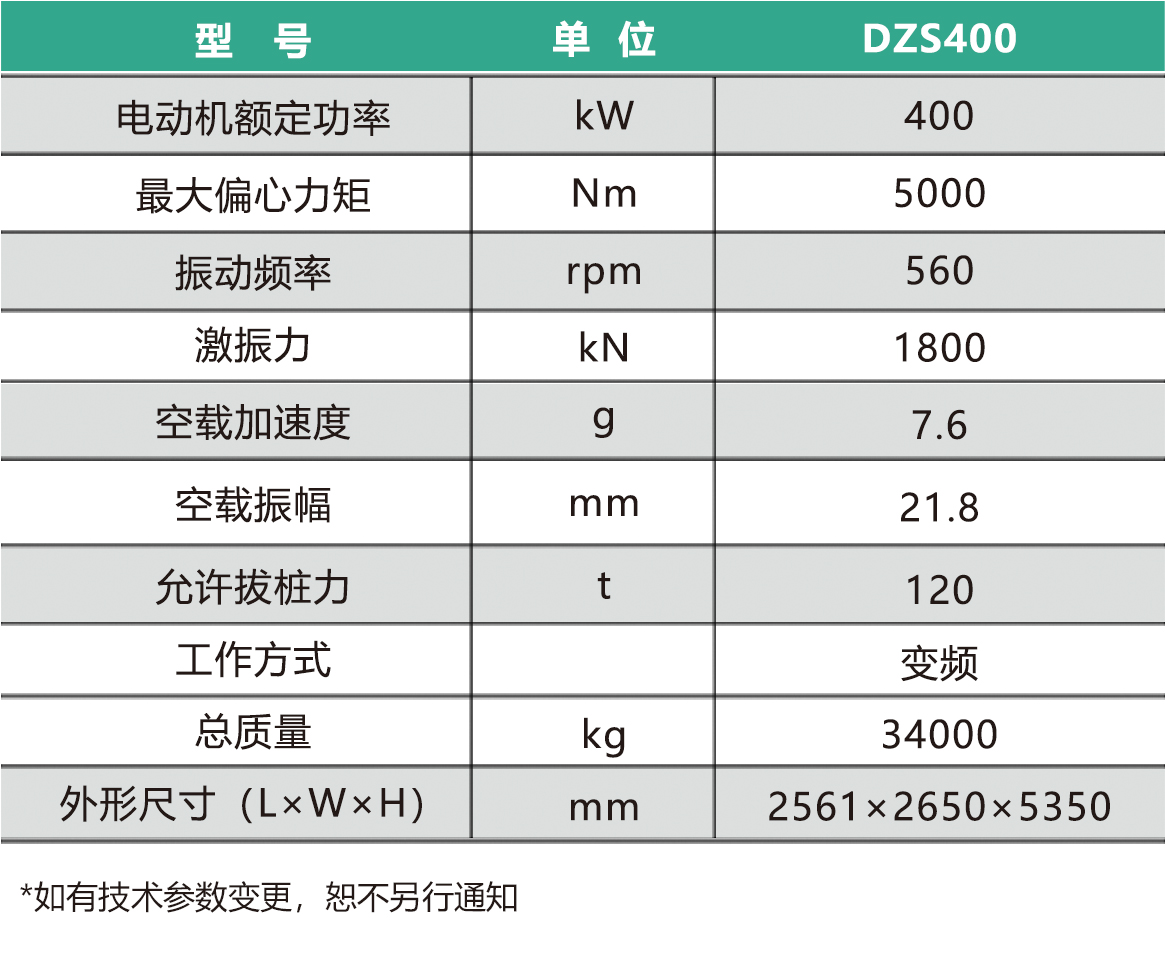 ● 控制櫃系統電壓爲380伏,顯示工作電壓、電流及頻率指示。可小範圍調整電機轉速,改變一定的激振力來适應不同地質。