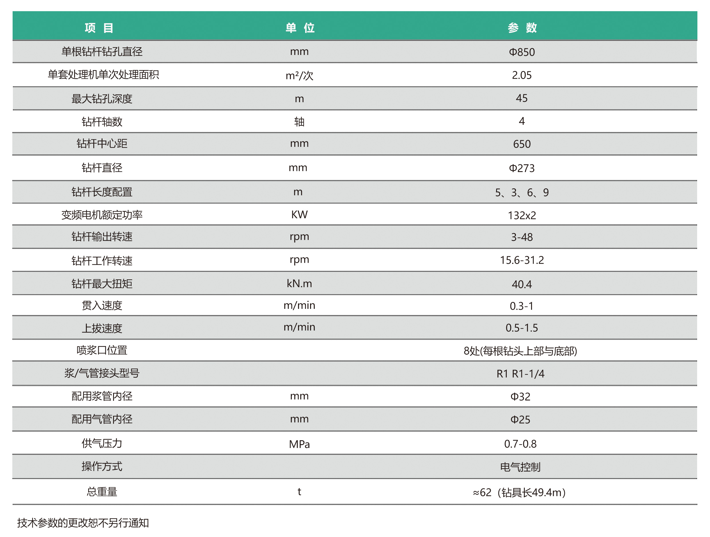 ●40m樁深配置JB170樁架,45m樁深配置JB180樁架;