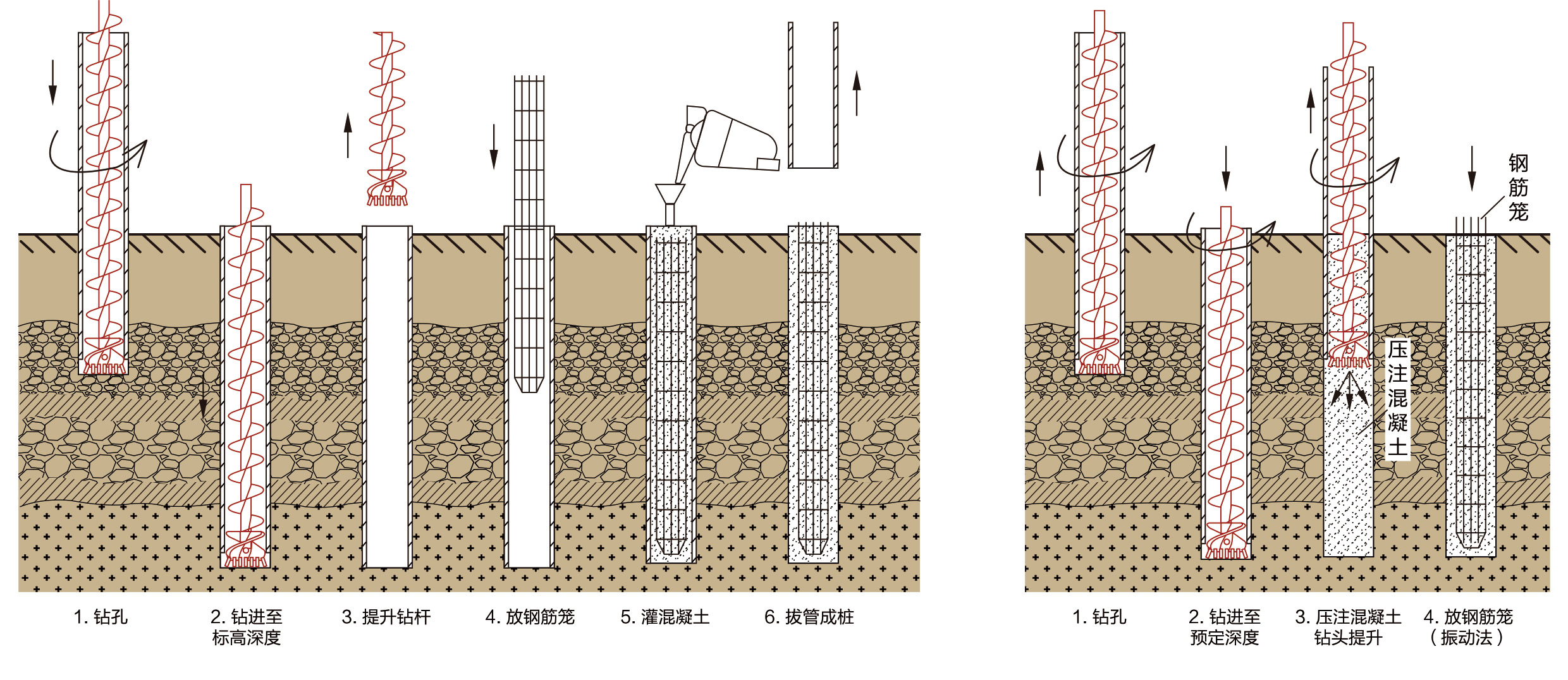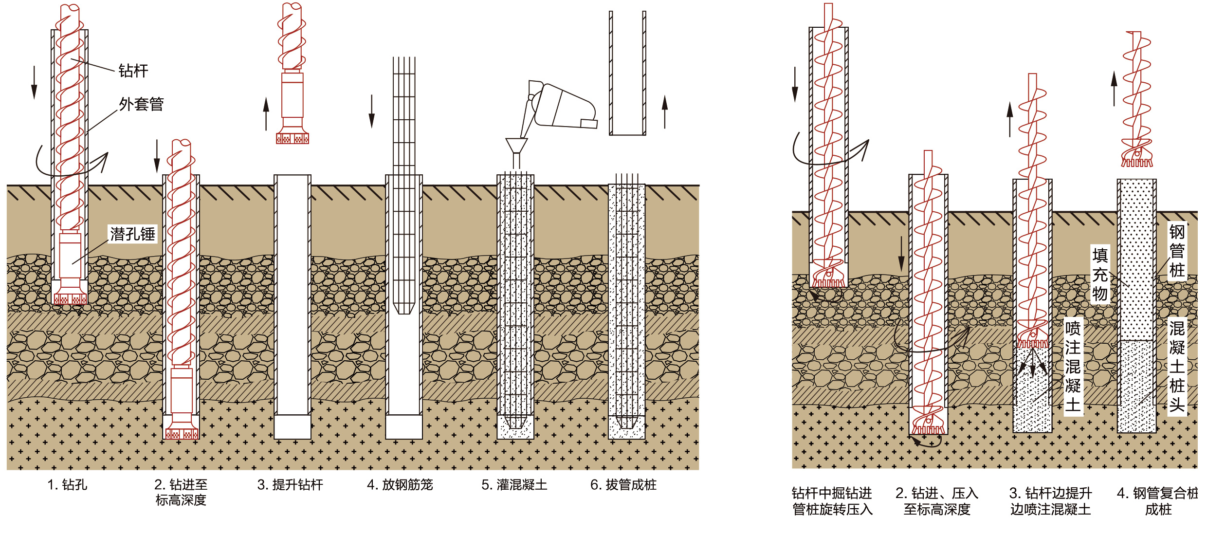 螺旋鑽進(jìn)+套管護壁鑽孔灌注施工