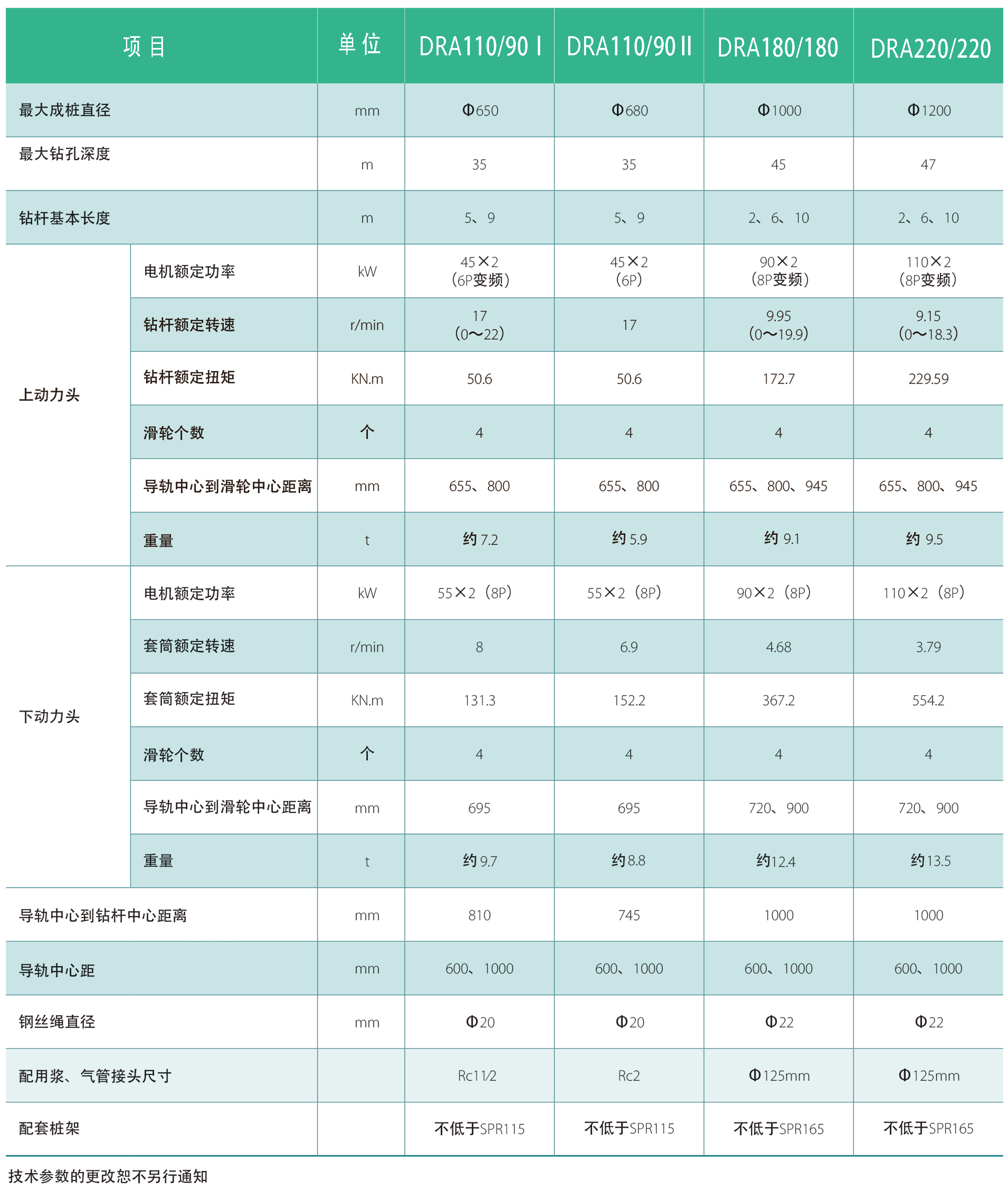 DRA系列多功能(néng)套管螺旋鑽孔機(雙動力頭鑽機)參數表