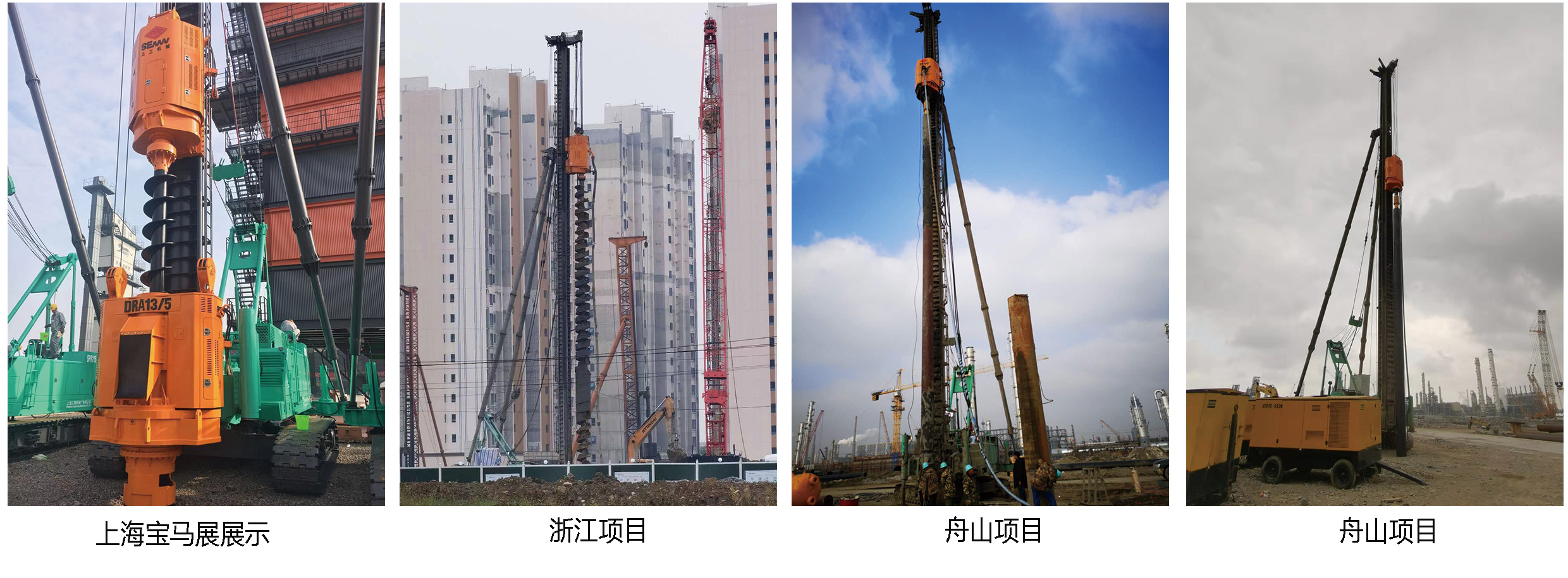 DRA系列多功能(néng)套管螺旋鑽機主要由可分離式的雙動力頭和電氣控制系統構成(chéng),配 置套管螺旋鑽杆及潛孔錘等組合鑽具,可進(jìn)行多功能(néng)、多用途施工,特别是能(néng)在卵 石漂石層及堅硬岩層等複雜地層完成(chéng)高效率鑽孔。具有成(chéng)樁孔徑、孔壁形狀規整, 質量好(hǎo),垂直精度高,施工無泥漿污染等特點,是一種(zhǒng)環保型的樁工機械新産品, 符合國(guó)家節能(néng)減排綠色施工的政策要求,具有良好(hǎo)的經(jīng)濟社會(huì)效益和廣闊的市場推 廣前景。