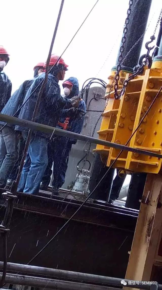 由于本次設備都(dōu)爲國(guó)内首創:國(guó)内首創自主研發(fā)的DCM系統專用船、上工機械生産的國(guó)内首台DCM處理系統。對(duì)于此次調試工作,中交四航局和上工機械都(dōu)充分重視,雙方技術人員夜以繼日高強度工作,最終月初1号處理機調試完畢噴漿試樁。8日,3号機正式噴漿試樁,2号機試樁入土11米,進(jìn)入了持力層。11日,1号機水下31m,入土25米左右,沖水流量160L/min滿足設計施工要求。由于此次試裝難度大、地質條件非常複雜,經(jīng)過(guò)專家們不斷的調試,DCM設備經(jīng)受住了考驗且設備運行正常。