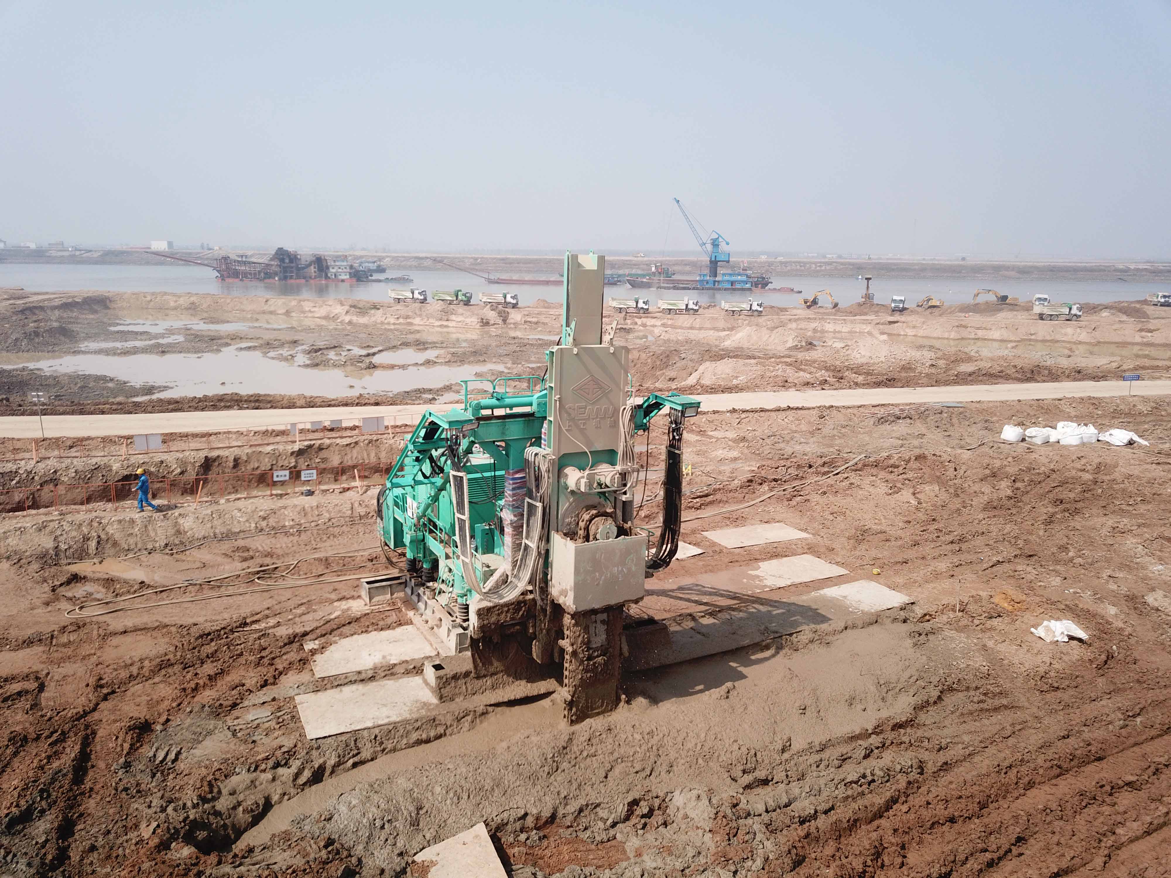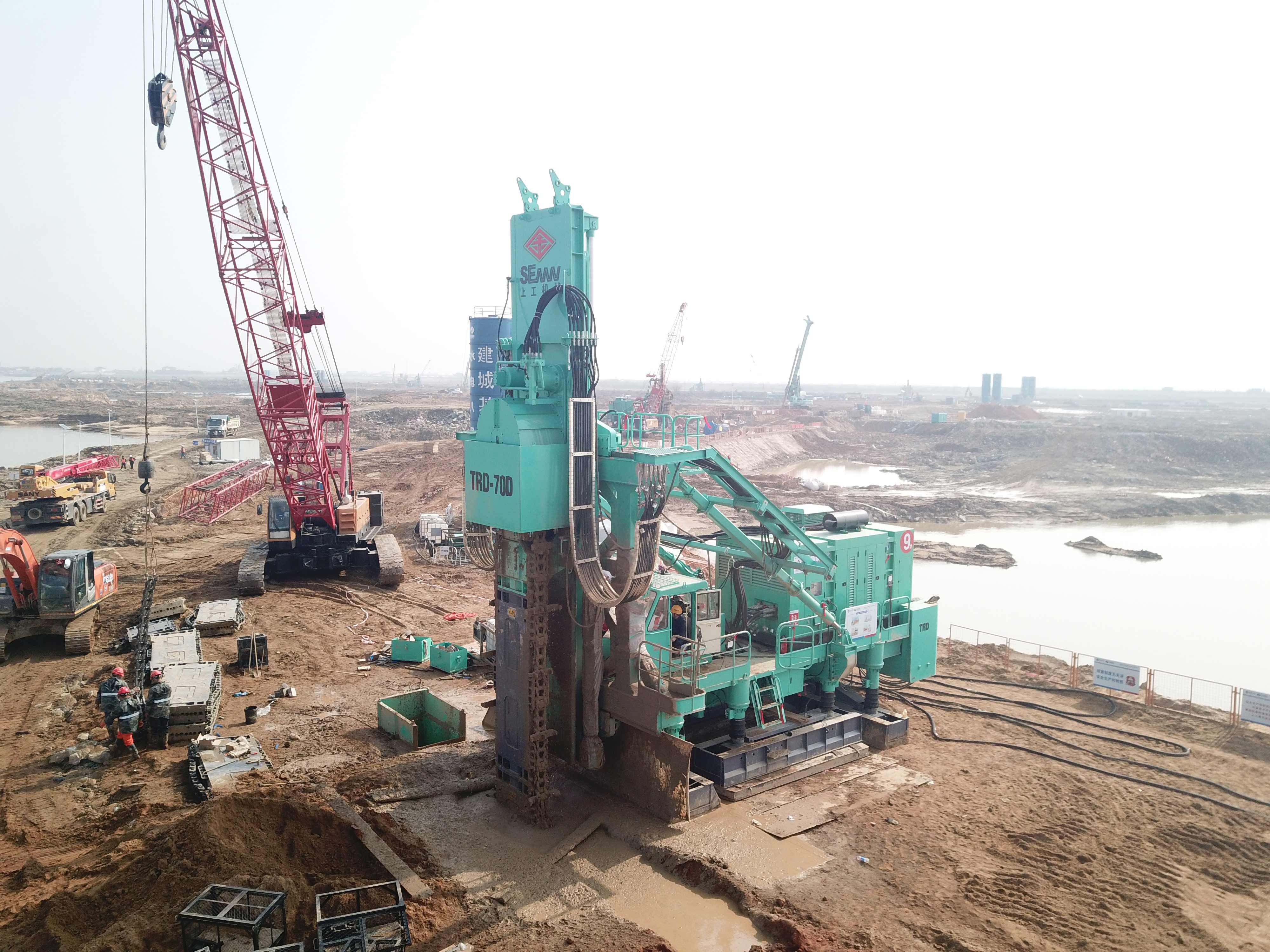近階段,上工機械TRD工法機助力任務是多段止水帷幕連續牆作業,該項目TRD施工總方量超100萬方,總長(cháng)度約30公裡(lǐ),項目所在地新建區境内河港縱橫、湖泊密布,以贛江、錦江、修河支流螞蟻河爲主體,地質層爲沙層和鵝卵石,在此複雜地況的江邊施工,對(duì)施工技術與設備有著(zhe)極高的要求,絕不是一件容易的事(shì)。