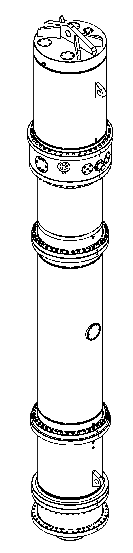 2021年,HMC350液壓差動增能(néng)式雙作用液壓錘成(chéng)功下線,目前正在處于調試狀态,第二代差動增能(néng)式液壓錘借鑒了氮氣增能(néng)式液壓錘封閉殼體的結構形式,可以适應水下樁基施工的要求。